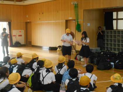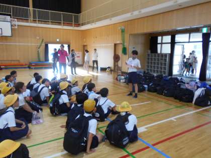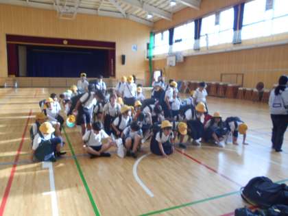 体育館で帰校式を行いました。2日間、天気に恵まれ予定した活動を全部行うことができました。子どもたちの小学校生活のいい思い出になることを願っています。