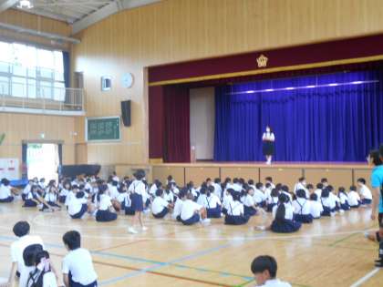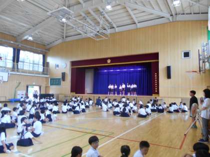 9月11日(木)に、2学期最初の児童集会を行いました。今回は、「聖徳太子ゲーム」でした。集会委員の人が、一人だけ違う言葉を言います。それをグループで当てるゲームです。全員が体育館にあつまって久しぶりの活動を楽しみました。