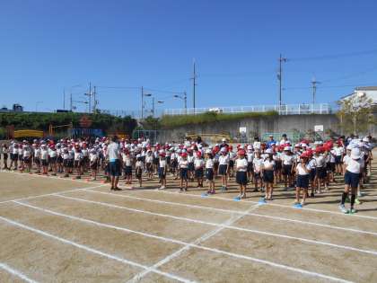 10月9日(木)の1時限目に、運動会の全体練習を行いました。今回は、終わりの体操と閉会式の練習です。本番まであと10日です。体調を崩さないように気をつけて、練習に励んでいます。