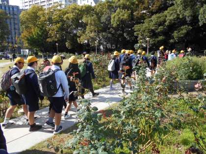 そのあと、靭公園に移動して、弁当を食べて、バラ園を見学して帰りました。