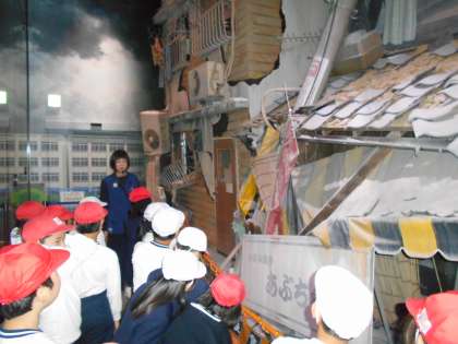 午前中に「あべのハルカス」にいった後、午後は「あべのタスカル」(阿倍野防災センター)に行きました。防災についての学習を深めました。