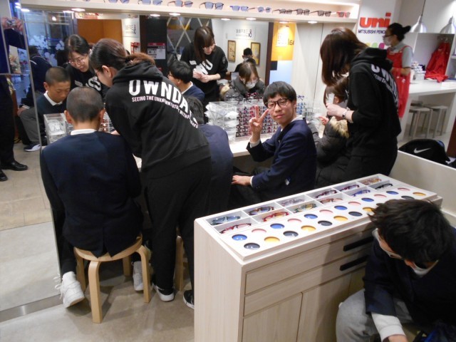 6年 卒業遠足です。いろいろな職業体験がはじっています。時間をみつけて、昼食をとります。