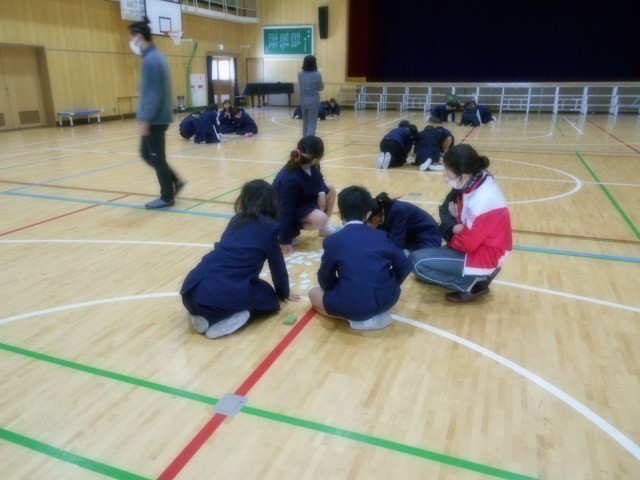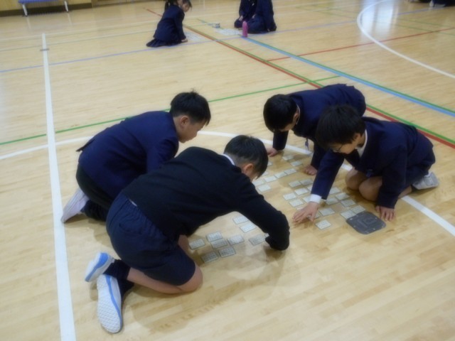 2月17日(火)の3.4時間目 4年生が体育館で「百人一首大会」を行いました。