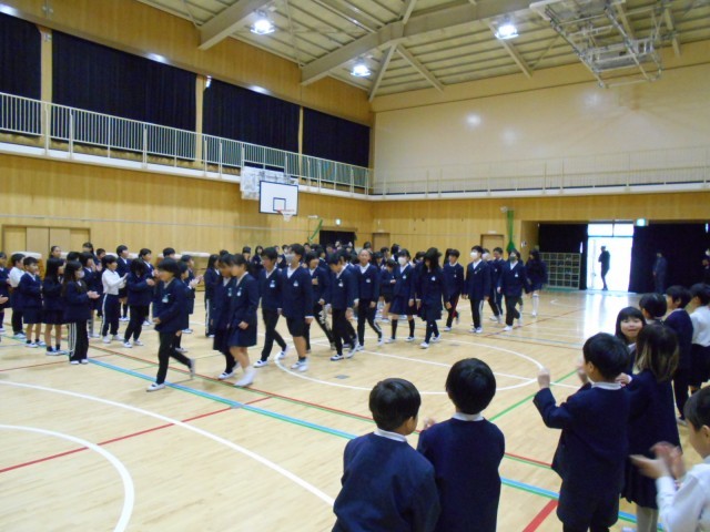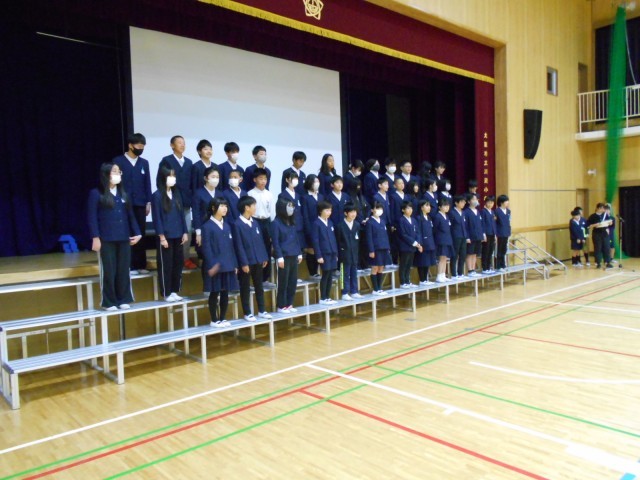 その後、6年生からもそのお返しとして、歌と言葉が返されました。子どもたちの気持ちがつたわってくる、とても良い会でした。