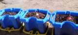 1年生が育てているチューリップの芽が出てきました。枯葉の間から、小さな紫色の花も...