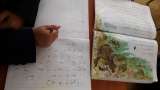 スイミーの学習です。スイミーになってことばを書いています。2ページ書いている子ど...