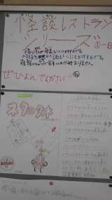 図書委員の人が図書室の廊下におすすめの本を紹介しています。