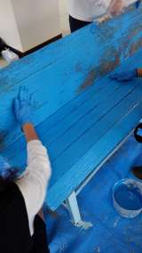 いよいよ卒業式が近付いてきました。卒業記念にベンチのペンキを塗り直しました。