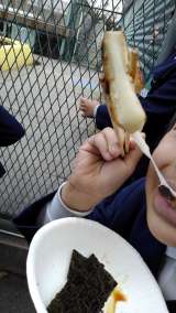 運動場にあるベンチにペンキを塗り、きれいにしています。出来上がりが楽しみです。
