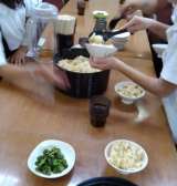 かやくご飯とお吸い物です。食事かかり、がんばっています。