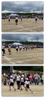 運動会が終わった後、 PTA役員、実行委員の方々、保護者、教職員で運動場のテント...