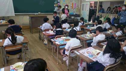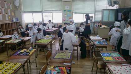 昨日の給食参観には、多くの保護者の方に来ていただきました。ありがとうございました。1年生の給食参観の様子です。