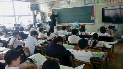 昨日の学習参観には、多くの保護者の方に来ていただきました。ありがとうございました。5年生の様子です。5年生は、地図の緯度と経度について学習しました。