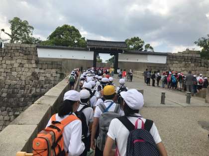 高学年(5・6年生)は、大阪城公園に残る戦跡を巡ってきます。