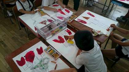 本日は、日曜参観に来てくださり、ありがとうございます。2年生は、特活「モジュール学習(百人一首、英語など)」と図工「ザリガニをかこう」をしました。
