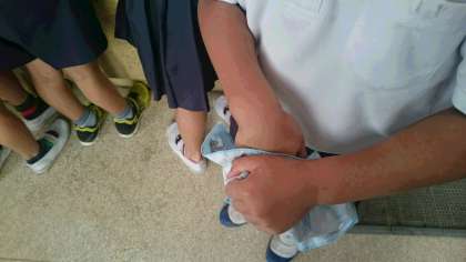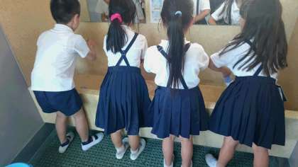 今週は、手洗い・歯みがき週間です。20分休憩が終わる頃、手洗い場では、ていねいに手を洗う児童の姿が見られます。手洗いの後は、ハンカチでしっかり手を拭いています。