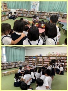 今日は、図書委員会による紙芝居や絵本の読み聞かせがあり、たくさんの子どもたちが集まりました。。
