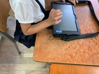 1年生は、はじめてタブレットを使い、あさがおを撮影しました。