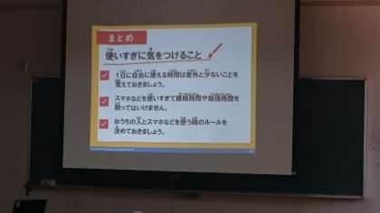 24日(月)、NTTドコモと平野警察署の方に来ていただき、携帯やスマホの正しい使い方についてお話していただきました。相手にいやな思いをさせたり、逆にいやな思いをしたりしないためにも携帯やスマホに潜んだ危険について学びました。