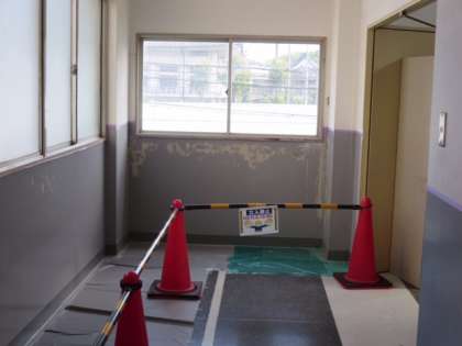 自然劣化と近年の集中豪雨並みの雨による、校舎内外の塗装のハガレが目立ってきています。教育環境維持・整美のため、廊下の横板部分の塗装を徐々にしていくださっていますので、紹介します。