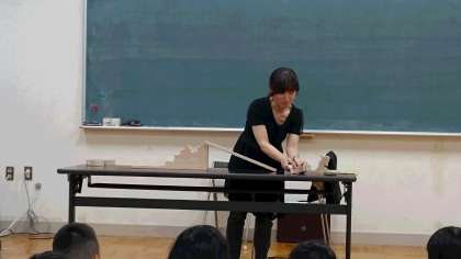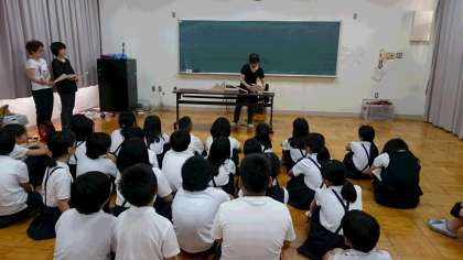 平野図書館のボランティアの方々によるお話会がありました。絵本や紙芝居の他に、“組み木”というパズルのような木を使いながら、お話の紹介もしてくださいました。題名は「三年峠」というお話で、おじいさんが歌に合わせて峠を越えたり転んだりする場面が印象的でした。