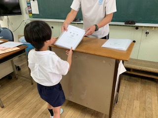 学級では、先生からの話の後、一人一人に通知表を手渡していきました。
