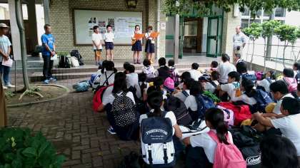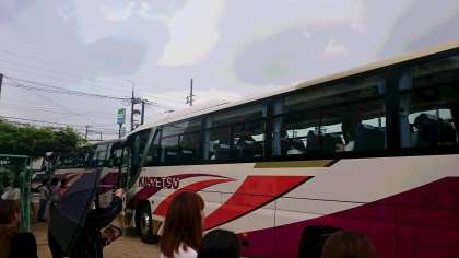 5年生は、今日から林間学習に行きます。出発式を終えて、バスは鉢高原方面へ出発しました。