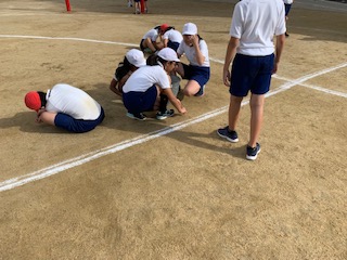 日曜日の運動会に向けて、5.6年生が準備を行いました。