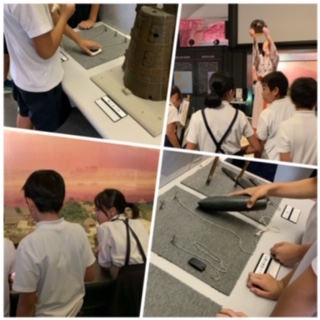 土器や昔の道具などを触ったりしています。