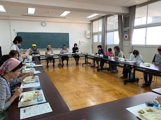 講師として栄養教諭をお招きしました。給食についてのお話や、子どもに行っている栄養指導の一部を体験しました。