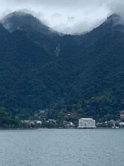 残念ながら、厳島神社の大鳥居は、現在改修工事中でした。