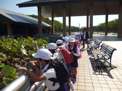 大泉緑地まで遠足に行きました。天候にも恵まれ、日頃見かけない遊具で楽しく遊んだあと公園内をあちらこちら散策しました。たくさんのどんぐりを拾って持って帰りました。生活科の学習に使います。