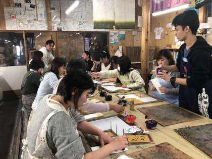 まず初めに、すりこみ京友禅染めを体験し、工房の方の丁寧な指導のもと、素晴らしい作品が出来上がりました。ランチビュッフェでは、美味しいお料理に楽しい会話も弾み、皆さんお腹いっぱい大満足!! 最後の西利のお漬物会館で、試食とご家族へのお土産を手に帰校となりました。貴重な体験もでき、楽しい1日となりました。
