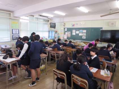 グループごとに、「意図が伝わるように 資料を効果的に活用して発表する」準備をしていました。その様子をご覧ください。