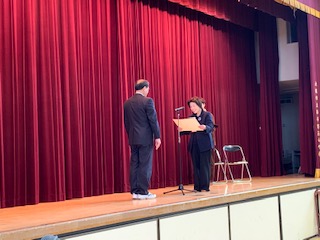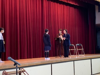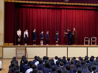 本日は、副区長が来校され、副区長から代表児童へ表彰状が渡されました。