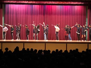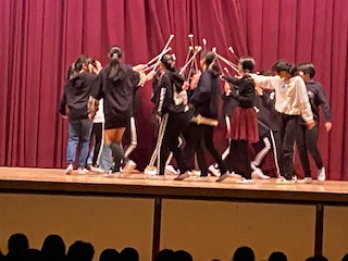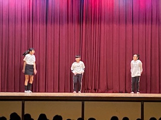 今日の昼休みの時間にバトンダンスクラブの発表会がありました。1年間クラブの時間を中心にみんなで練習してきた成果が発揮できました。たくさんの友達が見に来ていてとてももりあがりました。(入る前には手の消毒も済ませました)