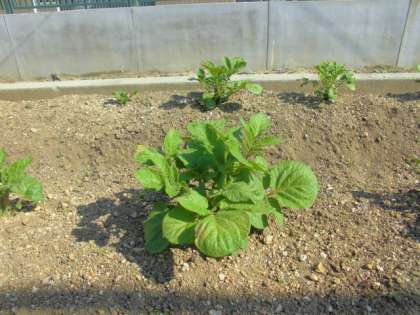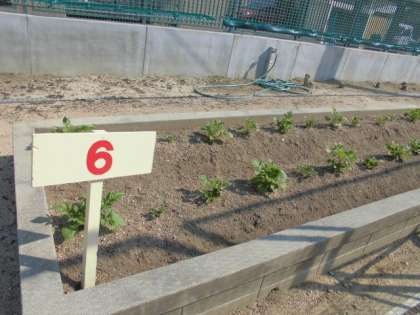 6年生の花壇には、観察用のジャガイモが育ってきています。
