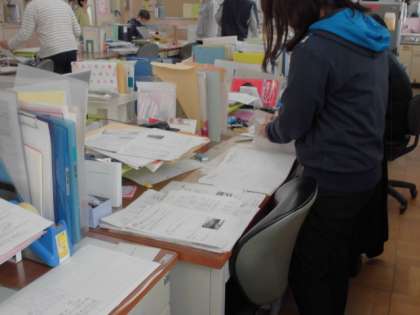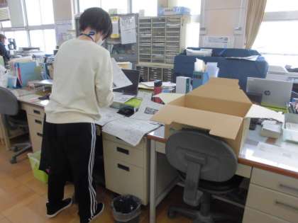 教科書や手紙の配布日が、12日・13日・14日となっています。その日に向けて、教職員が今作業中です。