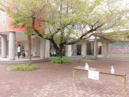昨夜の雨も上がったので、玄関付近で配布を行っています。