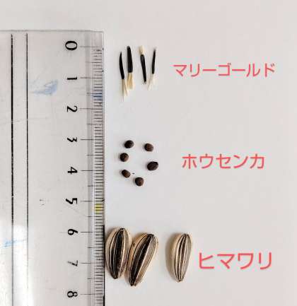 3年では、ホウセンカ・マリーゴールド・ヒマワリ を育ててかんさつします。みんなのかんさつ用に、一足先にたねまきをしました。うまく め が出るといいな!