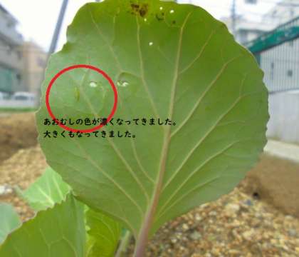 昨日見つけたあおむしが、今日は少しずつ大きくなってきて、色もこくなっていました。
