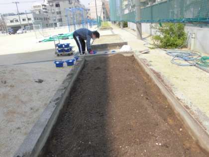 2年生の先生が、みなさんの植木鉢をきれいにして次の植物を植える準備をしていました。また、サツマイモを植える花壇の準備もしていました。学校再開になっていつでも学習できるようにしています。それまで、しっかりおうちの人と協力して、すごしてくださいね。