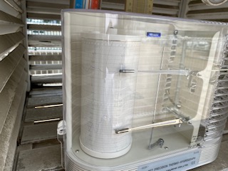 記録温度計がきちんと動いているか、ちょっとのぞいてみましょう。