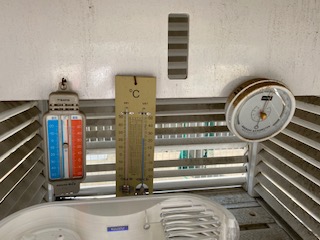 記録温度計は百葉箱の中に置いてあるのですが、他にもいくつか別のものが設置(せっち)されています。今回は少し説明したいと思います。