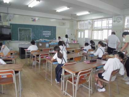 5年生は、自分の席についてしっかり課題に取り組んでいました。