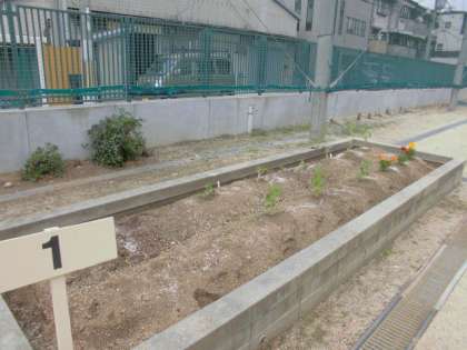 がくねんのせんせいが、がくしゅうえんにいろんななえをうえていただきました。