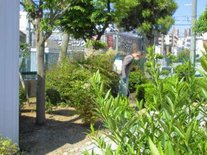 きつい日差しの中、管理作業員さんが除草作業をしてくれました。
