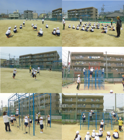 よーいドンでかけっこした後、遊具の使い方の学習をしました。