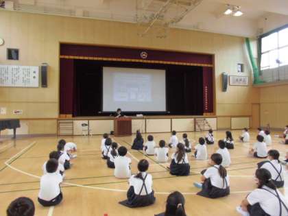 正しく伝わらないことがあること、ラインなどの使い方によっては、友達同士のトラブルになることもあるなど、具体的な例を示してわかりやすく話していただきました。