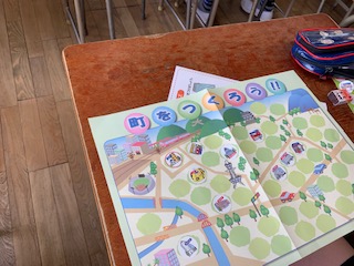 次に、「自分の町をつくろう!!」で10個施設を選んで町を作り、どんな施設を選んだのか確認をしていきました。